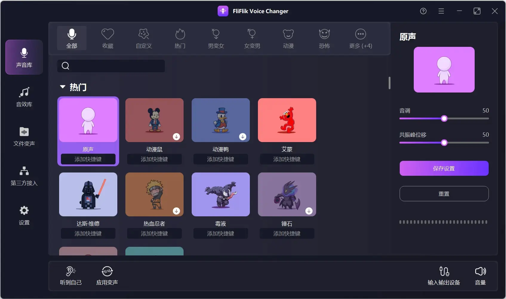 该工具提供了丰富的语音效果包,用户可以根据个人偏好进行选择和设置,其中包含了许多富有趣味性的变声选项。 实时变声 首先,这个功能提供了实时变声功能,支持在通话和录音时切换多种声音效果,包括机器人、卡通形象、低沉男音和甜美女音等。 -